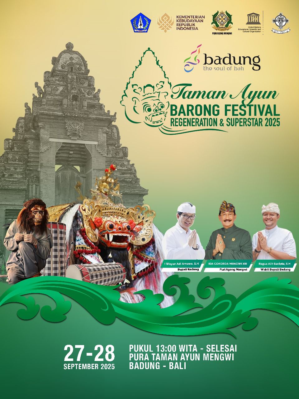 POSMETRONEWS.COM – Pura Taman Ayun, Mengwi, Badung, kembali menjadi pusat perhatian dengan digelarnya Taman Ayun Barong Festival 2025 pada 27–28 September mendatang. Agenda budaya tahunan ini sudah memasuki tahun ke-8 dan tahun ini mengusung tema Regenerasi dan Superstar.